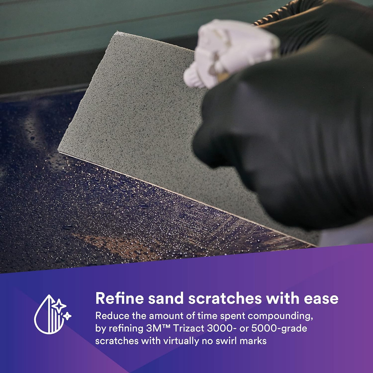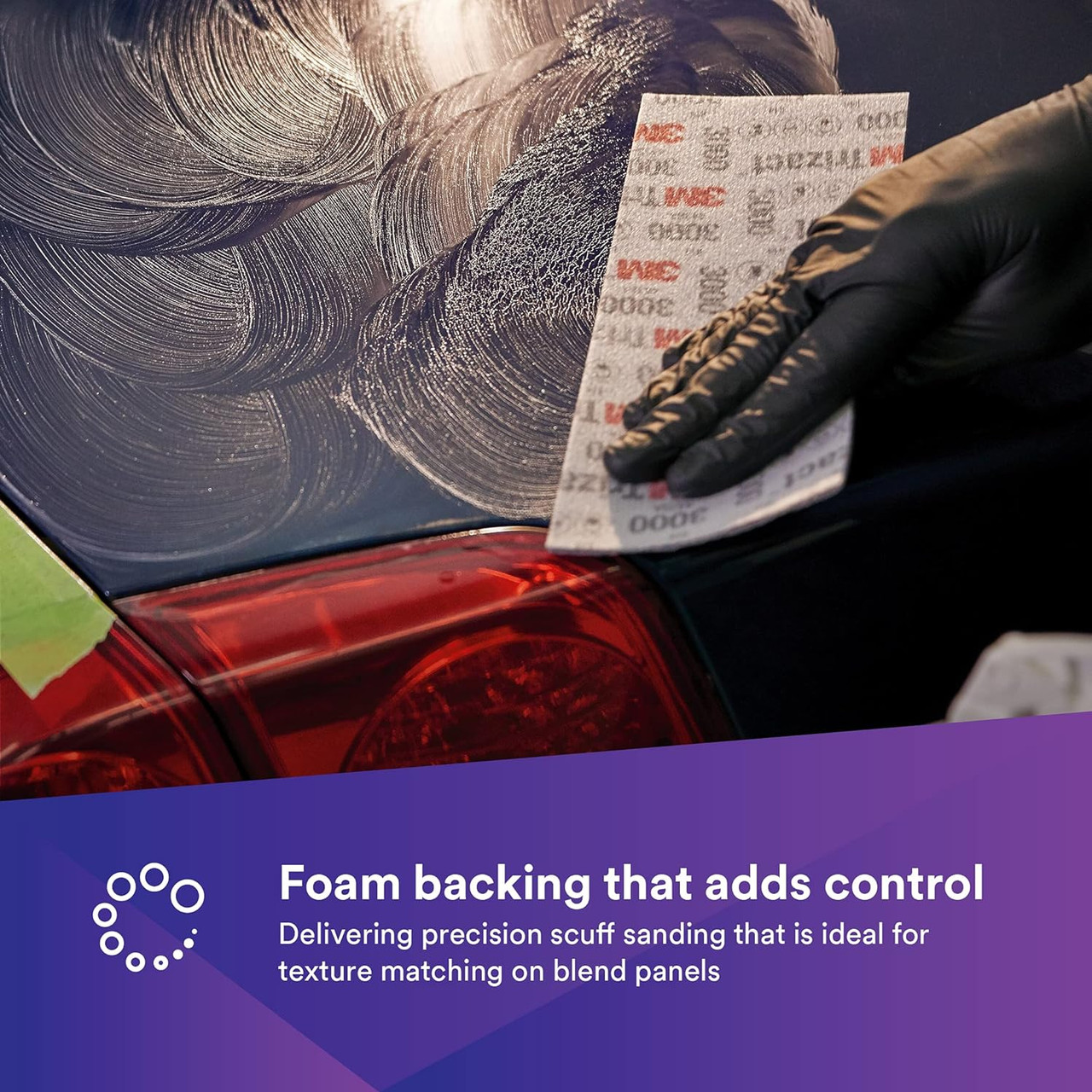 The 3M 70mm X 140mm 8000+GRIT Trizact Hookit Foam Abrasive Sheet (30803) is a premium finishing abrasive designed for efficient and high-quality paint correction. This sheet effectively removes fine sand scratches (up to 3000+GRIT) while minimizing the need for aggressive compounding steps.